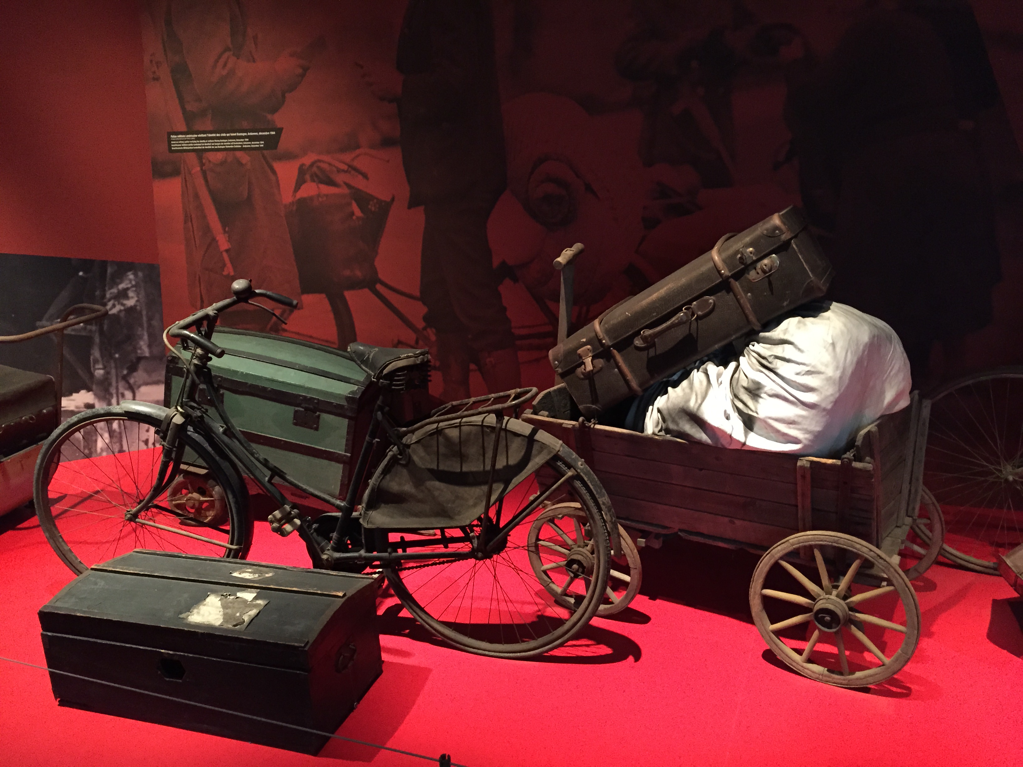The next day we visited the new Bastogne War Museum. Museums are challenging with Nathan and I haven’t perfected the art of engaging Nathan in such a heavy topic. In the beginning he ran around the museum while we attempted to listen to the Audio guide. The Audio guide followed four imaginary people during the war years in this specific region-a german soldier, a little boy, a woman and I think a soldier from Belgium. It was difficult to focus on the events unfolding while Nathan distracted others, so we reigned him in with the stroller and his ipad. He did exactly what he did in the Nuremburg Museum-covered himself in his stroller and watched his ipad while we focused on the heavy topic at hand. It’s the only way to see a WWII museum with a four year old (well, with our four year old anyway).