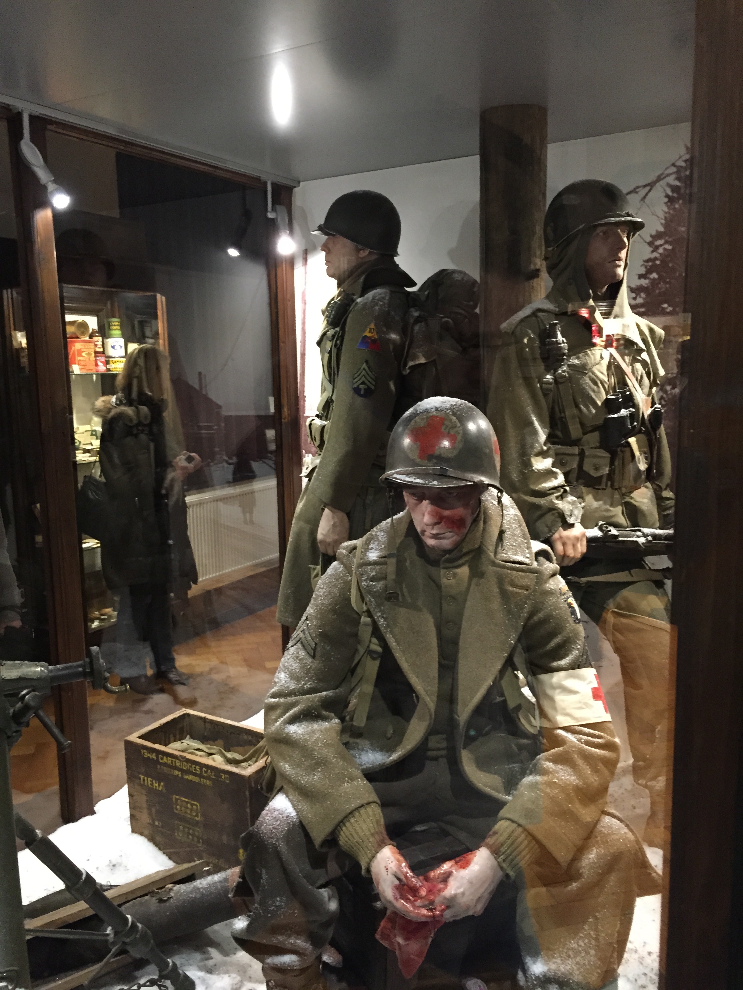 It’s a small museum, just three floors, with all kinds of scenes laid out from the 101st Airborne’s fight throughout the war, and especially in Bastogne. When we walked in, the woman behind the counter introduced herself and told us she was the granddaughter of General Patton and was here for the weekend for a special exhibit on General Patton. We were excited to meet her and see the special exhibition.